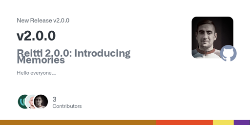 danielgraf@discuss.tchncs.de to Selfhosted@lemmy.worldEnglish · 23 hours agoReitti v2.0.0: Introducing Memories – Transforming Your Location Data into Personal Storiesplus-squaregithub.comexternal-linkmessage-square13linkfedilinkarrow-up1102arrow-down12