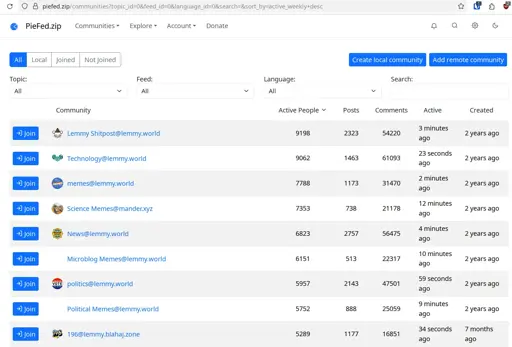 One important thing about Lemmyverse is that you can search for communities your instance isn’t “aware of” yet. Seeing the “Add remote community” button, I guess this is something that’s not possible with Piefed’s community search?
