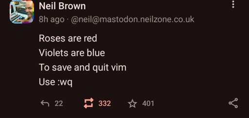 arrow-up1411arrow-down1imageVery poetic, very practicallemmy.worldAMillionMonkeys@lemmy.world to linuxmemes@lemmy.worldEnglish · 5 days agomessage-square14linkfedilink