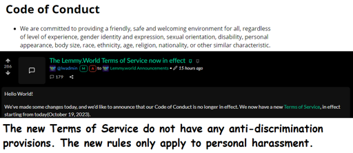 arrow-up16arrow-down1imageLemmy.world removes its rules against discriminationlemmy.worldHardlightCereal@lemmy.world to Fediverse@lemmy.worldEnglish · 2 years agomessage-square8linkfedilink