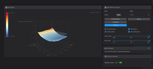 minus-squarenieceandtows@programming.devOPlinkfedilinkEnglisharrow-up1·1 month agoI have a Concrete slab and a rubber paver underneath. I removed them, cleaned them, put the printer back on, and reran self check. Here’s the mesh now. Still a bend, but now everything is on or above the flat plane.