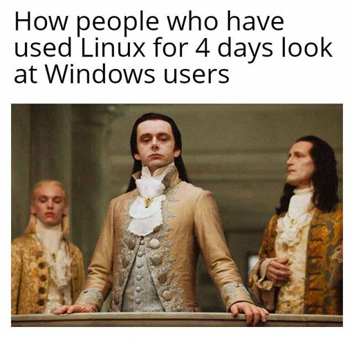 arrow-up11.62Karrow-down1imagePeasants...lemmy.worldekZepp@lemmy.world to linuxmemes@lemmy.worldEnglish · 25 days agomessage-square174linkfedilink