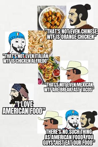 Dude, Hamburgers are literally named after the non-US city they originally came from…